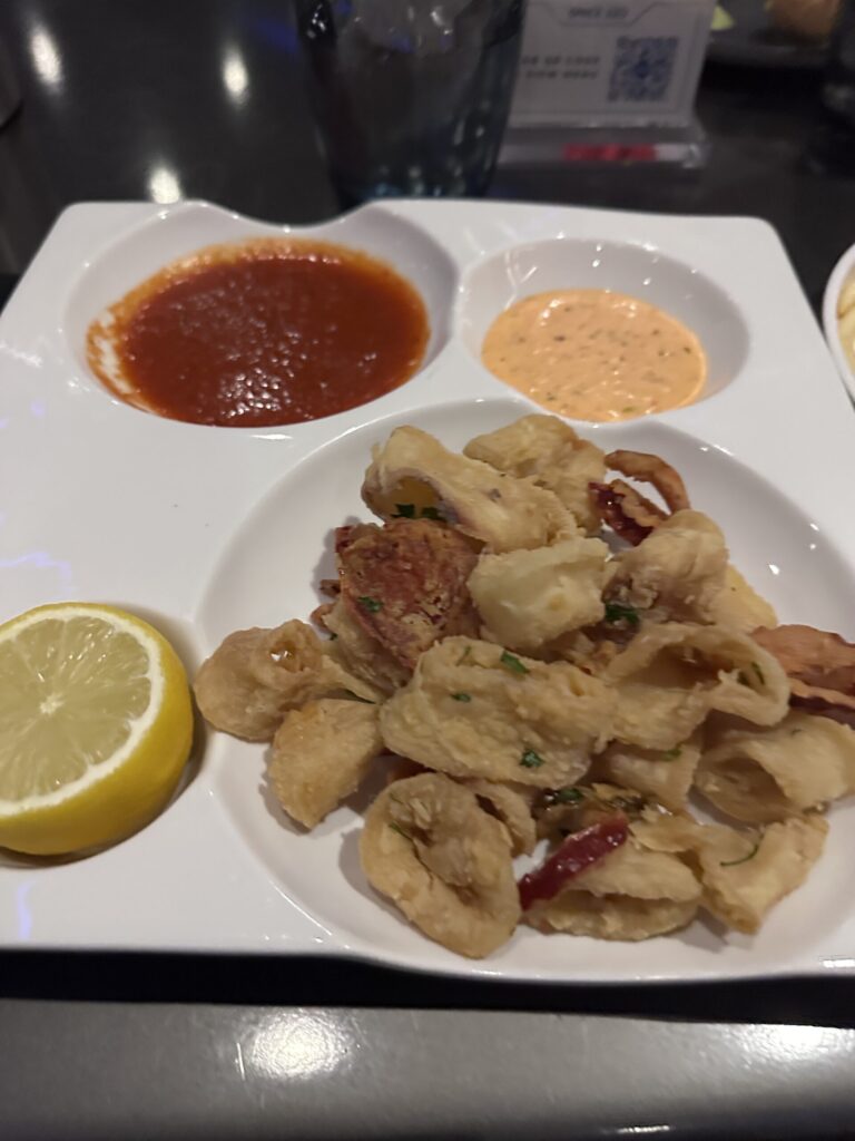 宇宙へ向かうエレベーター、迫力ある宇宙の映像でとにかく没入感が素晴らしかったです。料理も総じて美味しかったです。特にStarry Calamariが気に入りました。