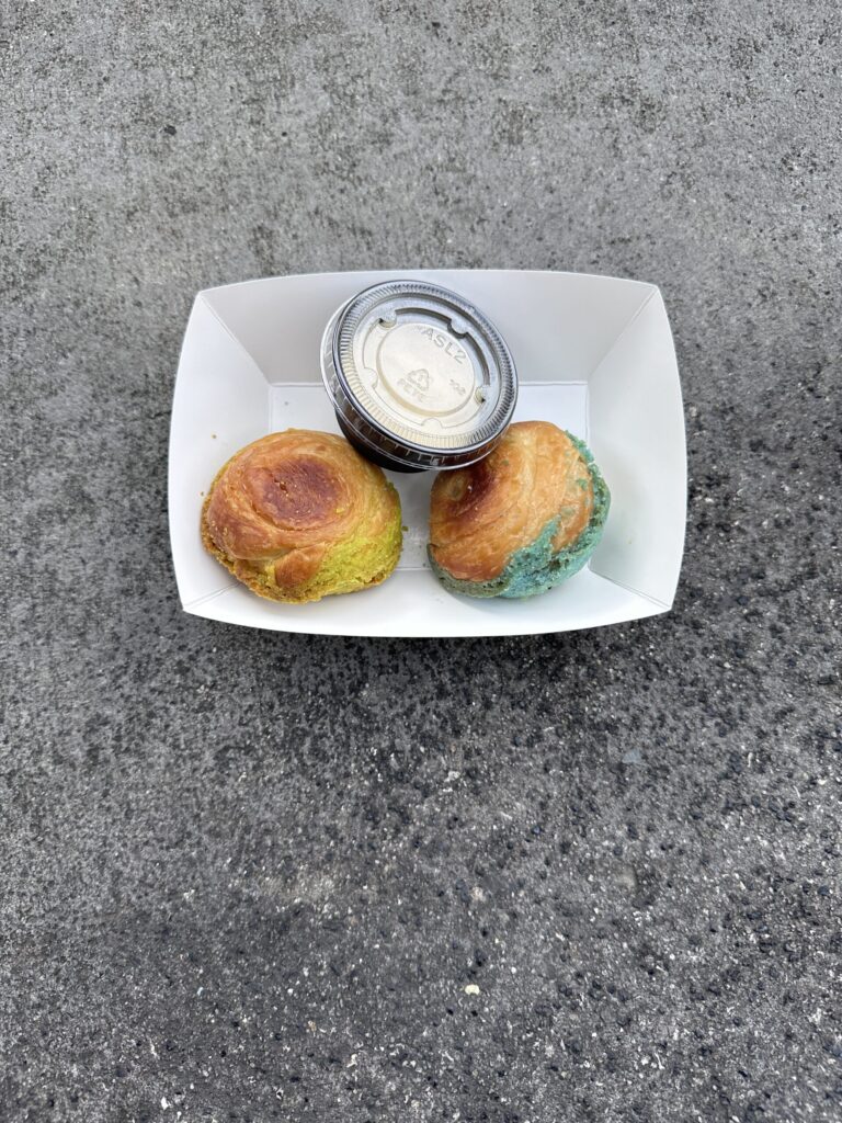 有名なブルーミルクを飲みたくてついでにPuffbreadも注文してみました。Puffbreadは、冷たかったので、あたたかい状態で食べたかったと感じました。ブルーミルクは恐らく限定バージョンだと思うのですが、値段的に考えても普通のブルーミルクでよかったかなと思いました。