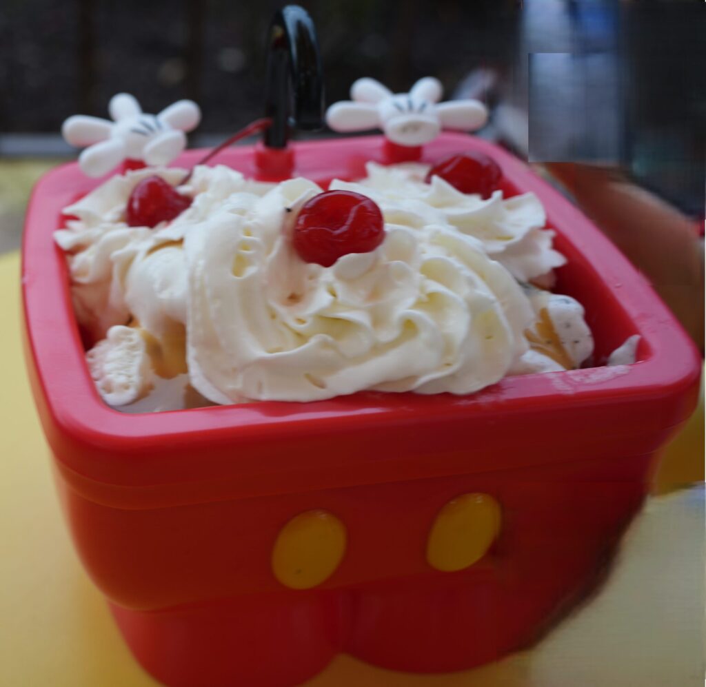 事前に調べていて絶対食べたいと思っていたサンデーです。ミッキーのキッチンシンクはお土産に持って帰れます。持ち帰れるようにビニール袋も予め持参しました。量が多いので食べきれるか心配でしたが、おやつの時間帯、疲れた体に糖分がとても染みました。「ミッキーシンクサンデー美味しかったね」と日本に帰ってきてからも子供が言うくらいお気に入りです。ぜひチャレンジしてほしいです。