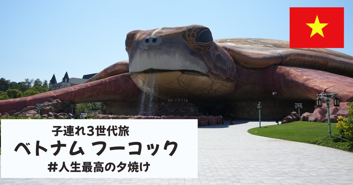 別の便でベトナムに到着していた両親と合流し、ここからはしばし3世代旅行です。「Sheraton Phu Quoc Long Beach Resort」に移動しました。空港からホテルのシャトルバスが出ているので、一度空港に戻って出発します。今回の旅のメインと言っても過言ではない、3 Bed Room Villaでの宿泊です。これまでの人生でTOP3に入るくらい広くて素敵なホテルでした。